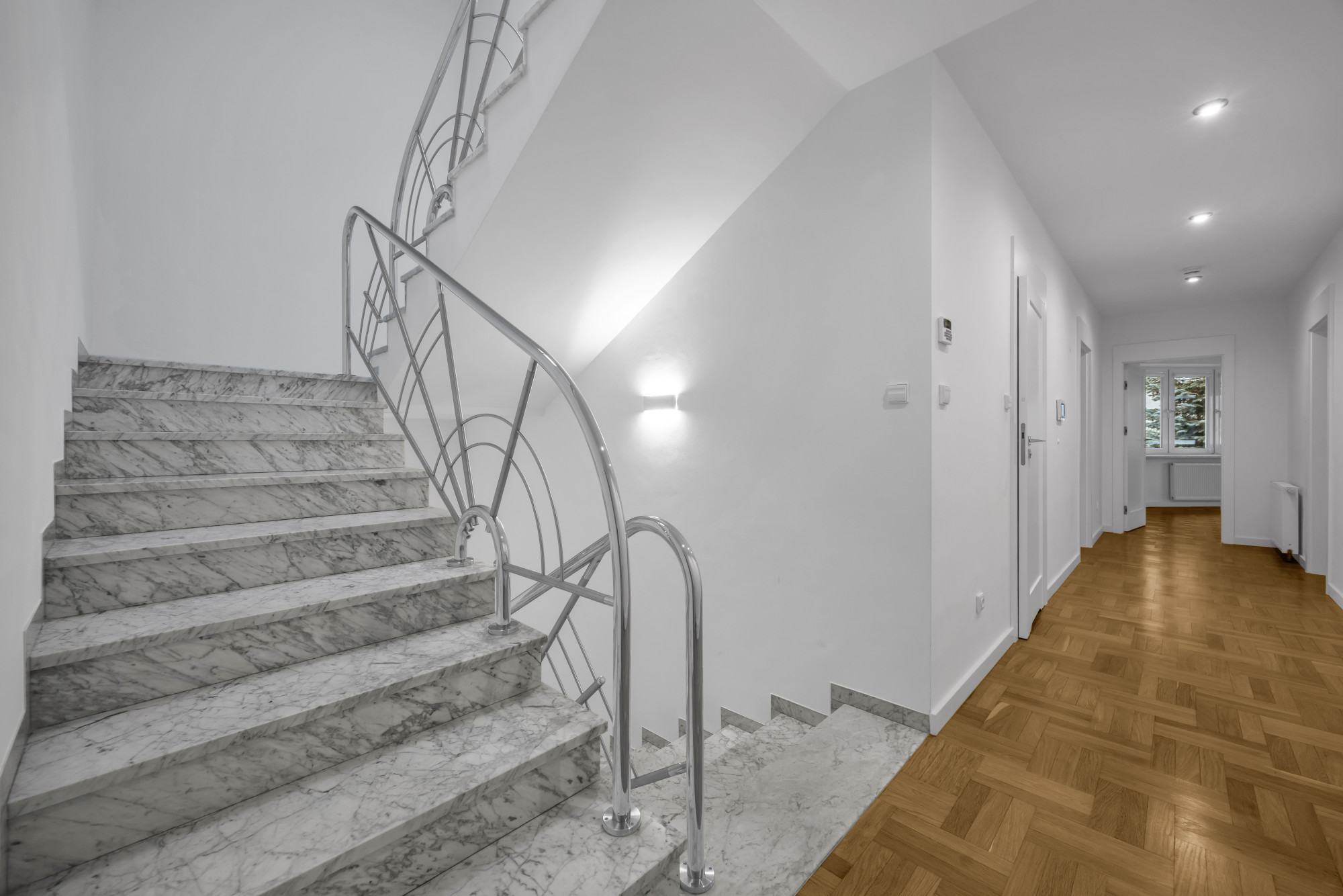 Duży podjazd przed budynkiem umożliwiający parkowanie 4 samochodów. Alarm, klimatyzacja, internet. Do czynsz należy dodać opłaty licznikowe.
