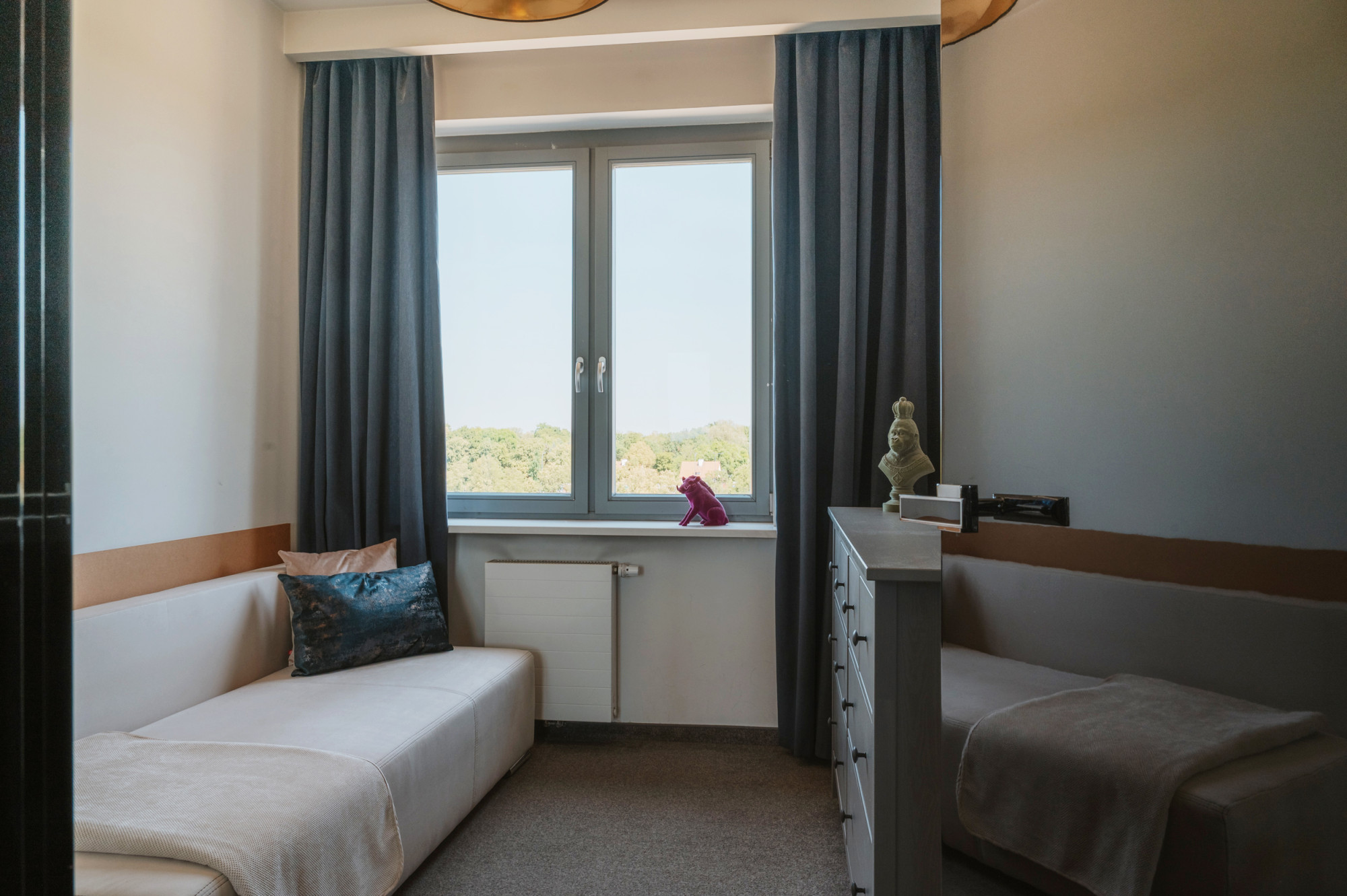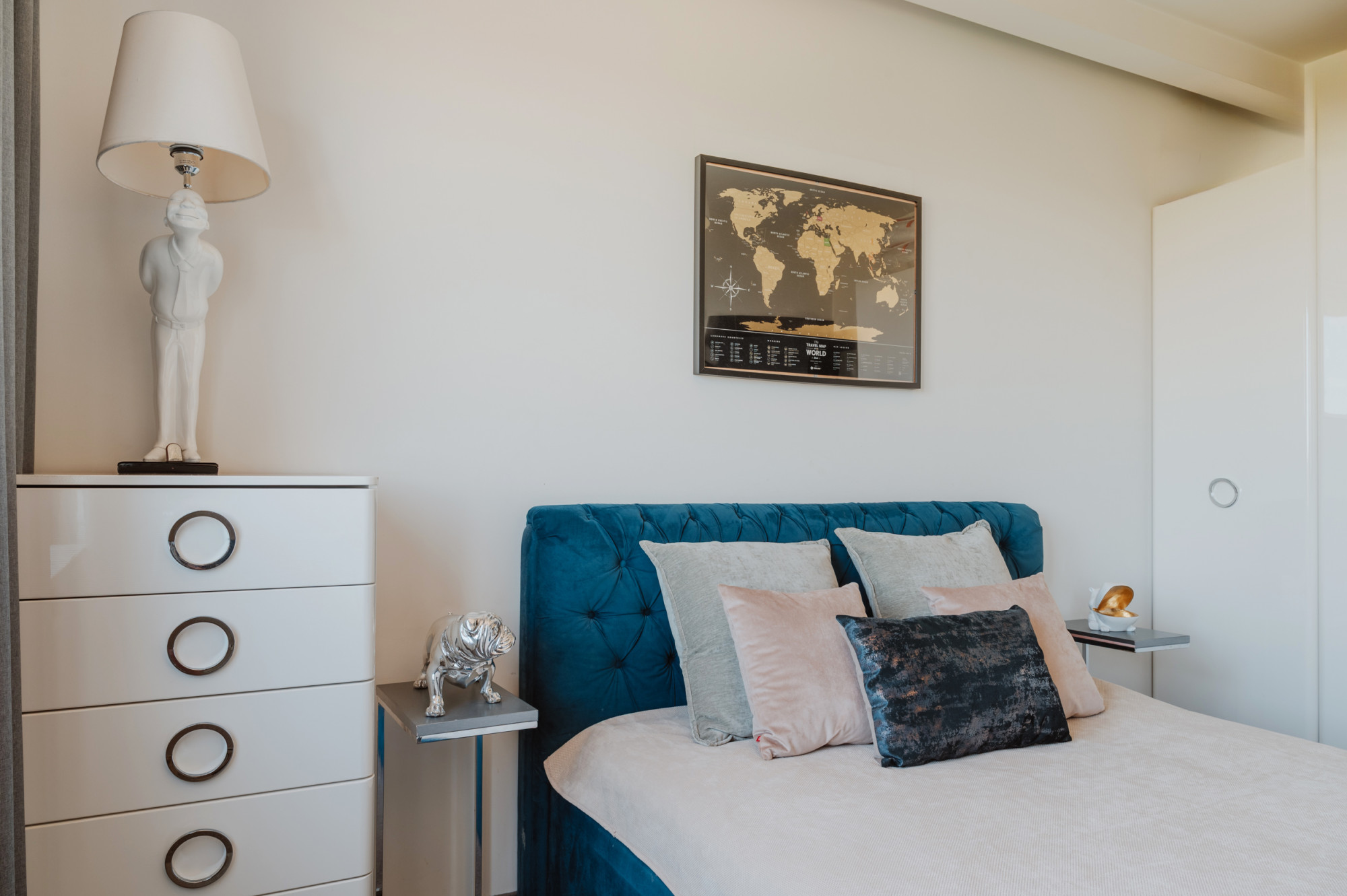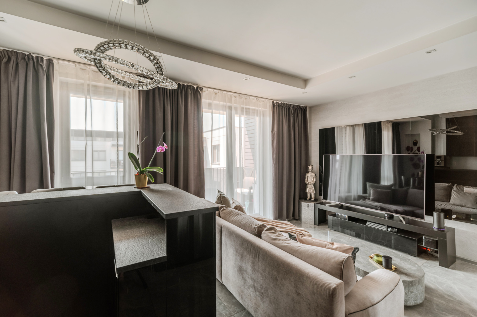 EUROVILLA prezentuje nowoczesny apartament z 2 sypialniami, 15-metrowym tarasem i komórką lokatorską, na sprzedaż w Miasteczku Wilanów. Apartament został urządzony bardzo wygodnie i praktycznie. Jest dwustronny.