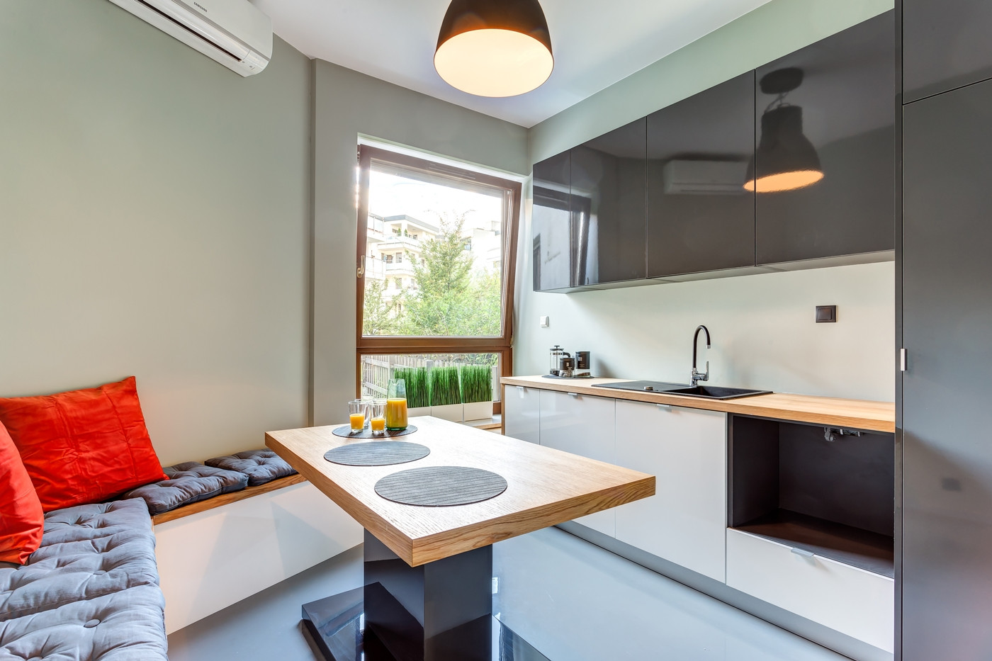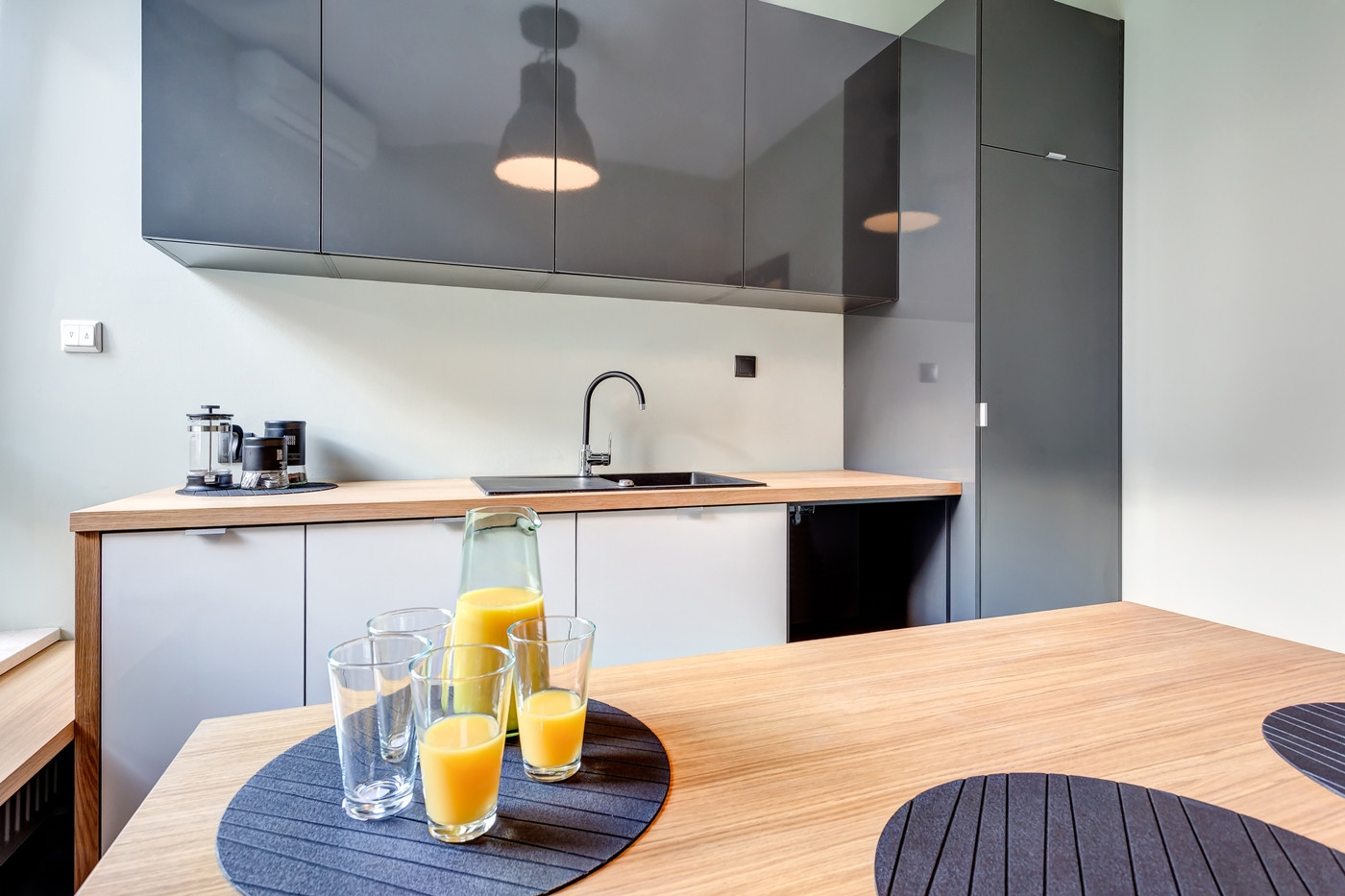 - w pełni wyposażona kuchnia z zapleczem socjalnym, są m.in. mikrofalówka i zmywarka,