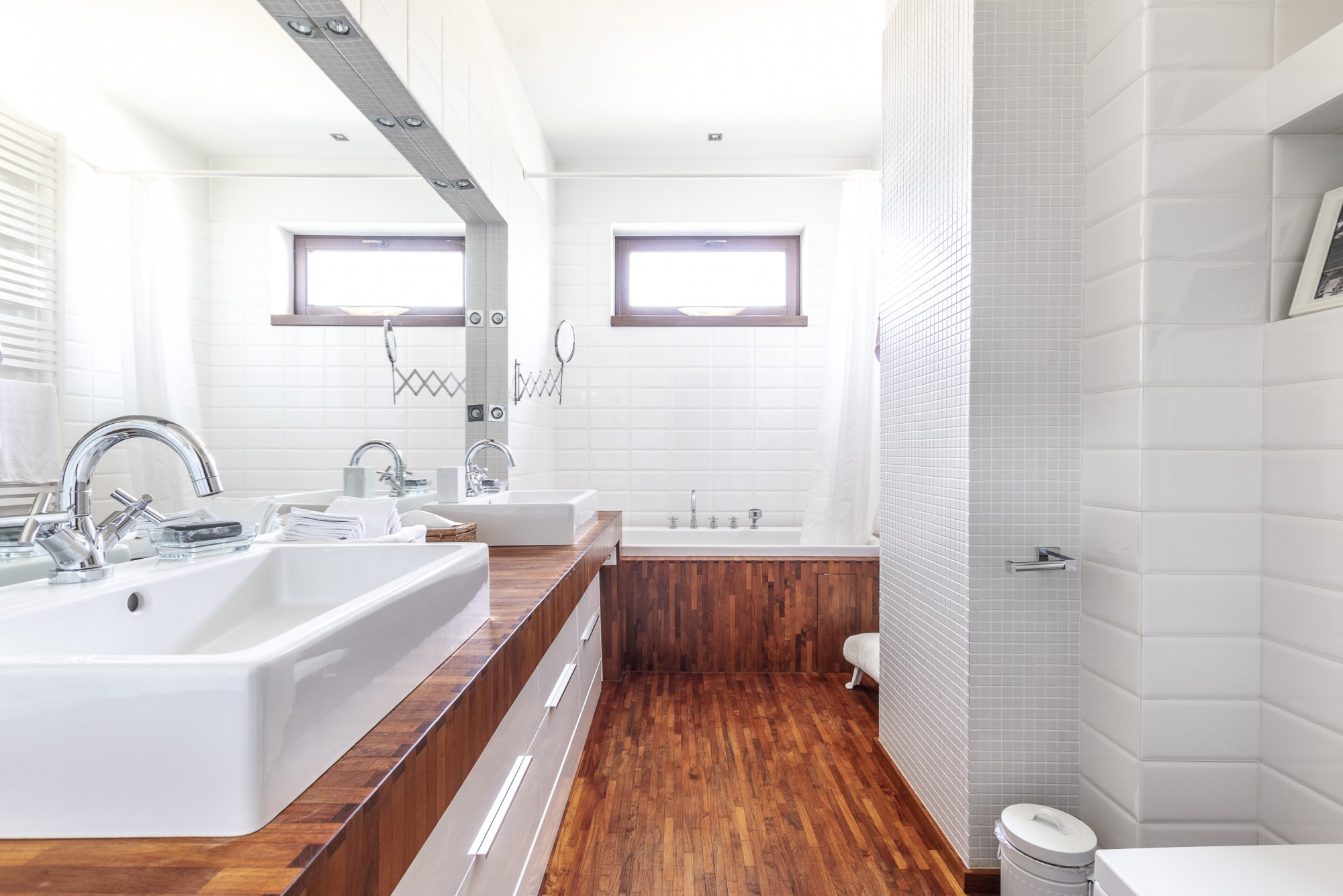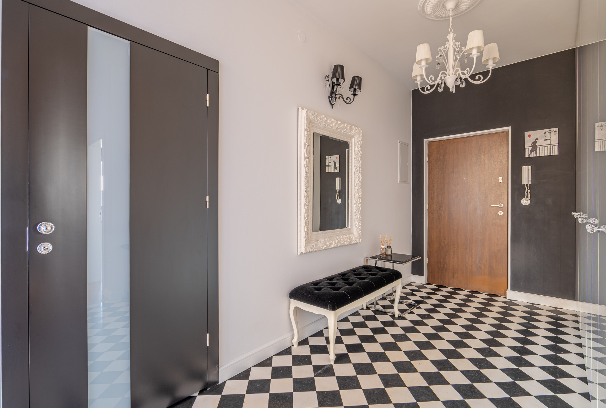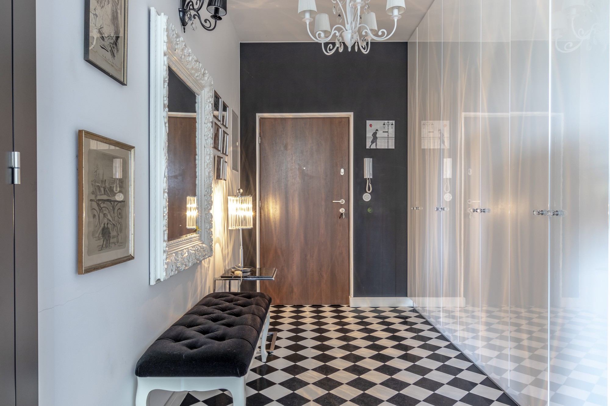 Mieszkanie gustownie urządzone przy użyciu materiałów wysokiej jakości.