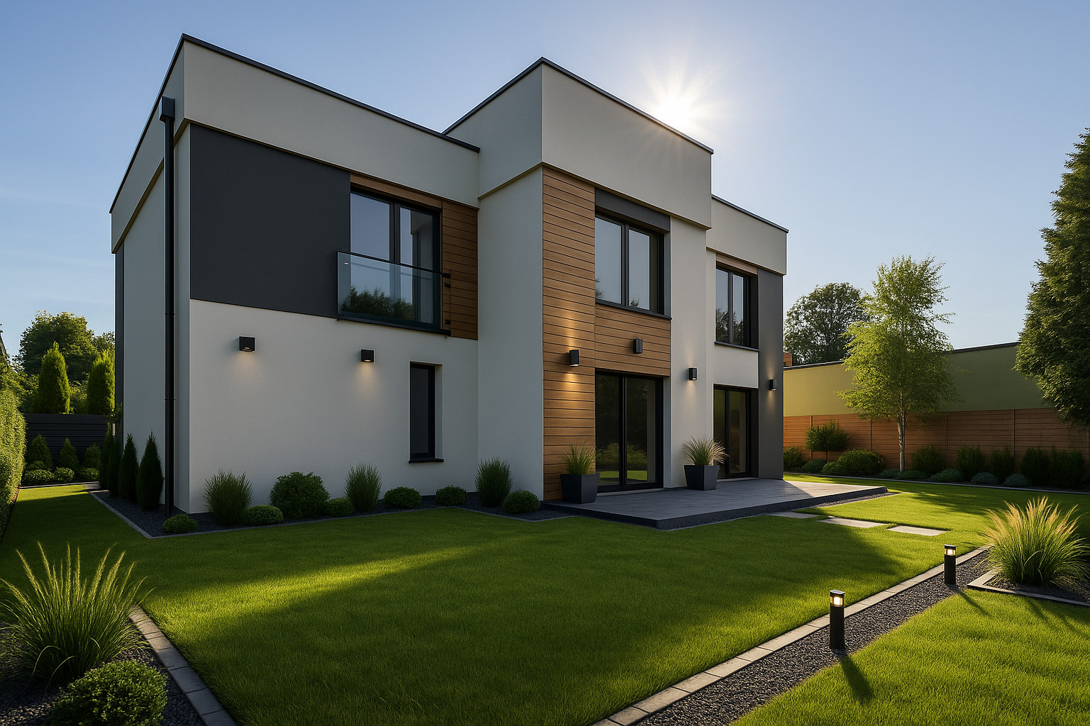 Dom charakteryzuje się dużymi przeszkleniami, zapewniającymi świetne nasłonecznienie i komfortowymi rozwiązaniami architektonicznymi.