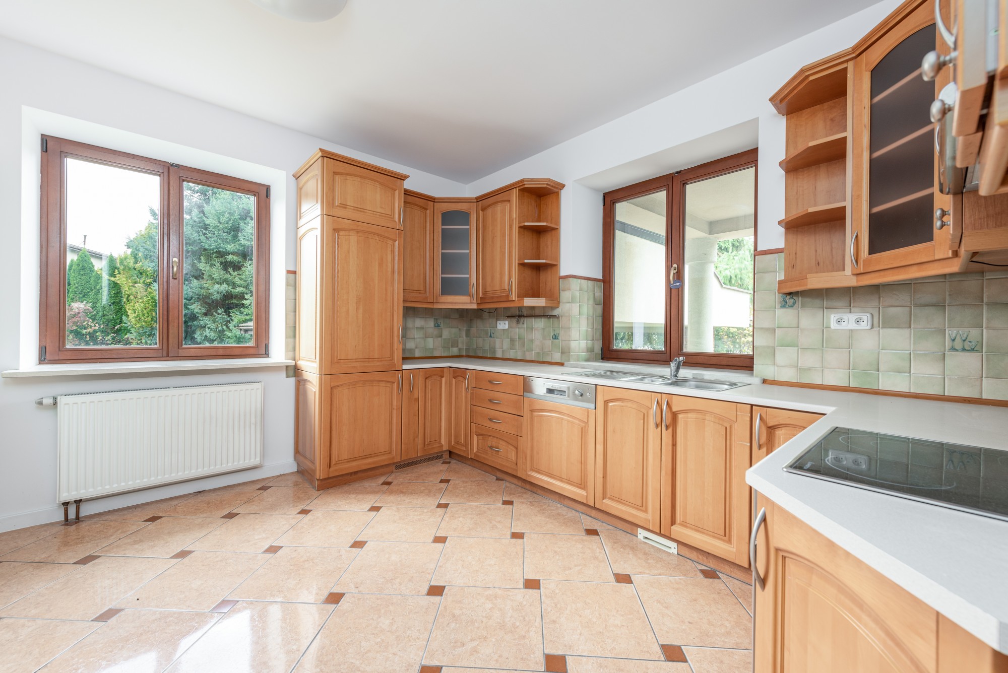 W skład nieruchomości wchodzi m.in.Salon z wyjściem na ogród, kuchnia, holl, wc, 6 pokoi, garderoba, pokój kąpielowy, łazienka, pokój telewizyjny, garaż, pralnia z łazienką, spiżarnia, kotłownia.