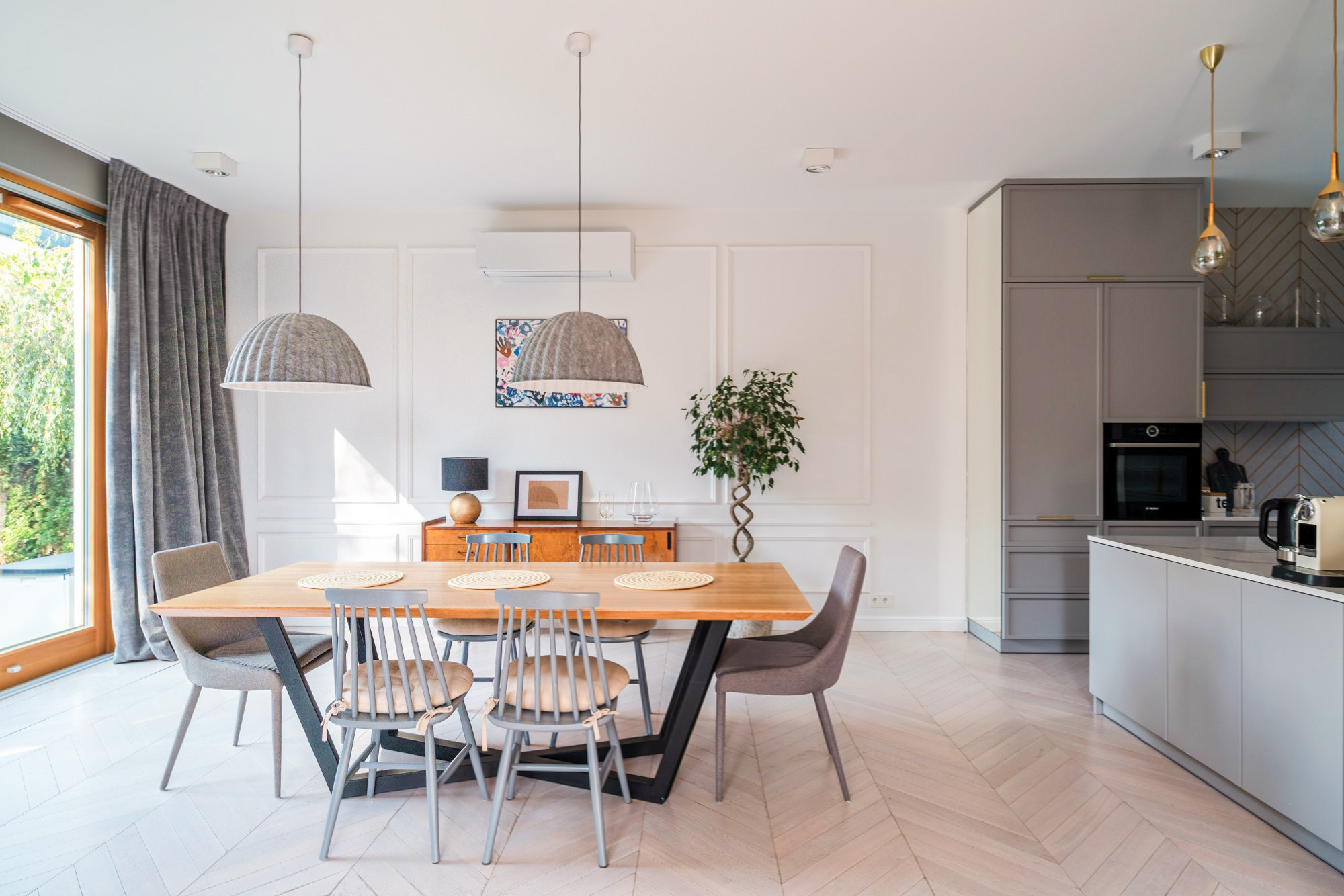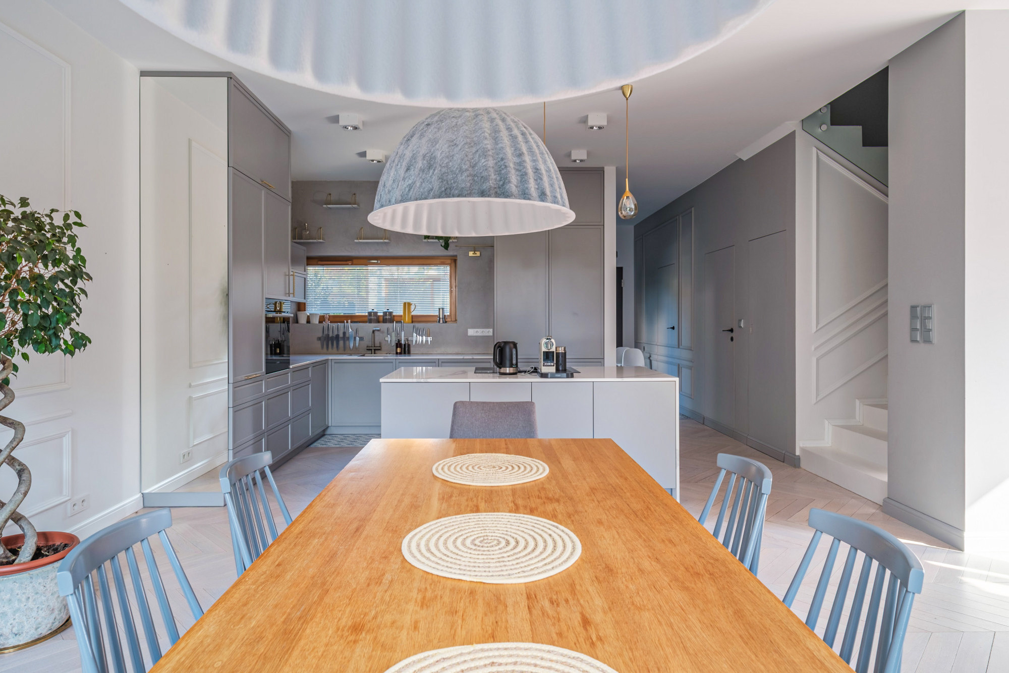 Dom jest wynajmowany z całym wyposażeniem, widocznym na zdjęciach. Przestronna garderoba typu walk in przy wejściu i praktyczne szafy w zabudowie w całym domu, w tym takie schowki jak spiżarnia czy pralnia.