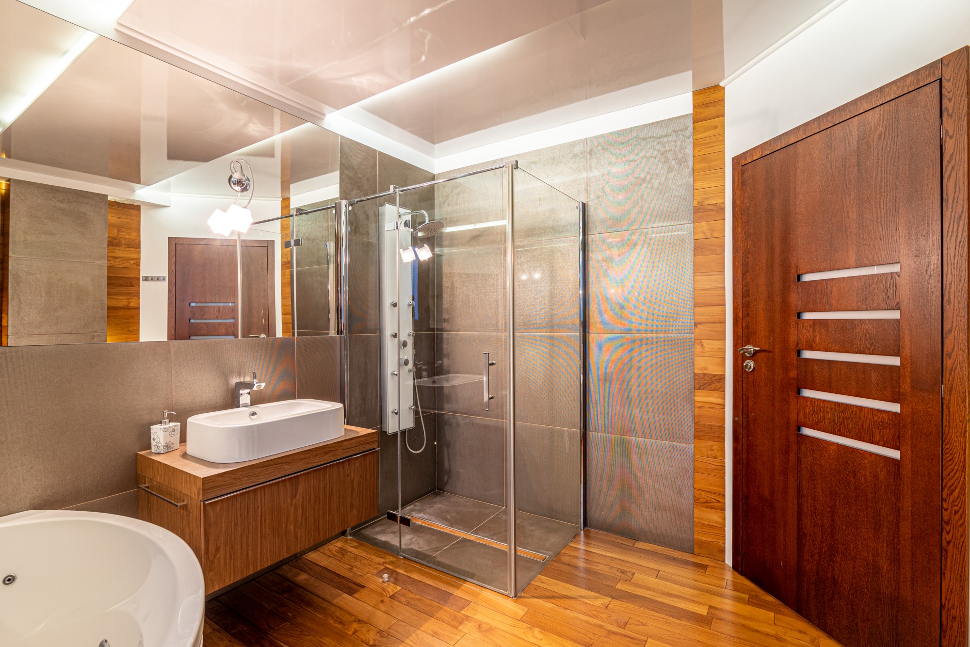Na całej powierzchni parteru gres i podgrzewane podłogi. W pokojach drewno tekowe.