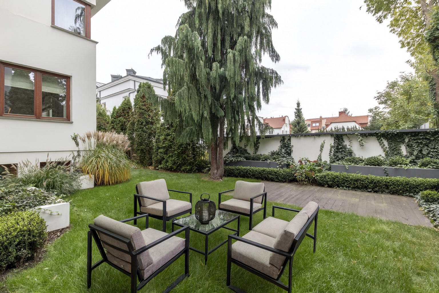 Bardzo ładny ogród z tarasem.