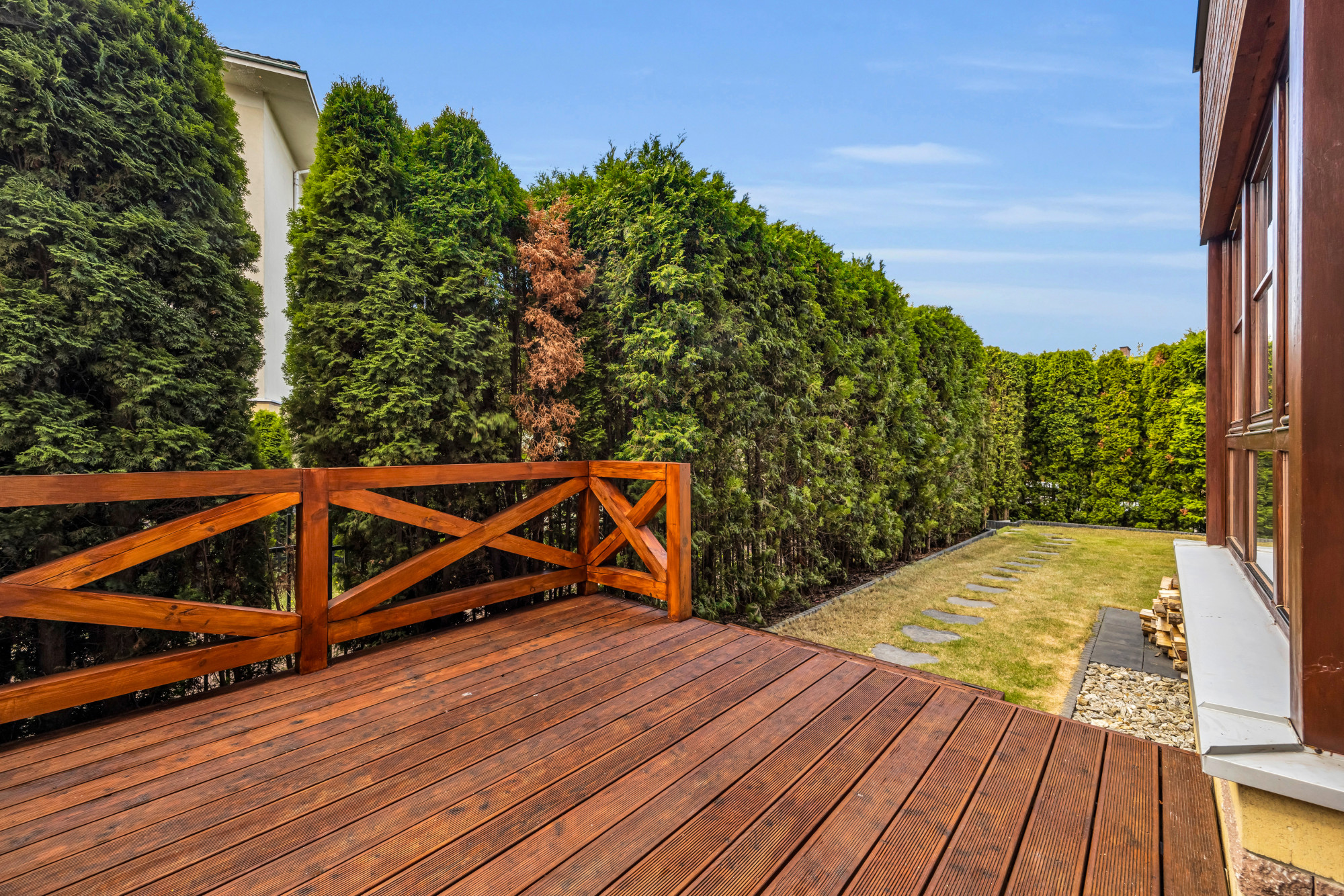 Na parkingu osiedlowym dostępne miejsca postojowe dla mieszkańców i gości. Ogród okolony żywopłotem zapewniający intymność. Ogród i taras podświetlony.