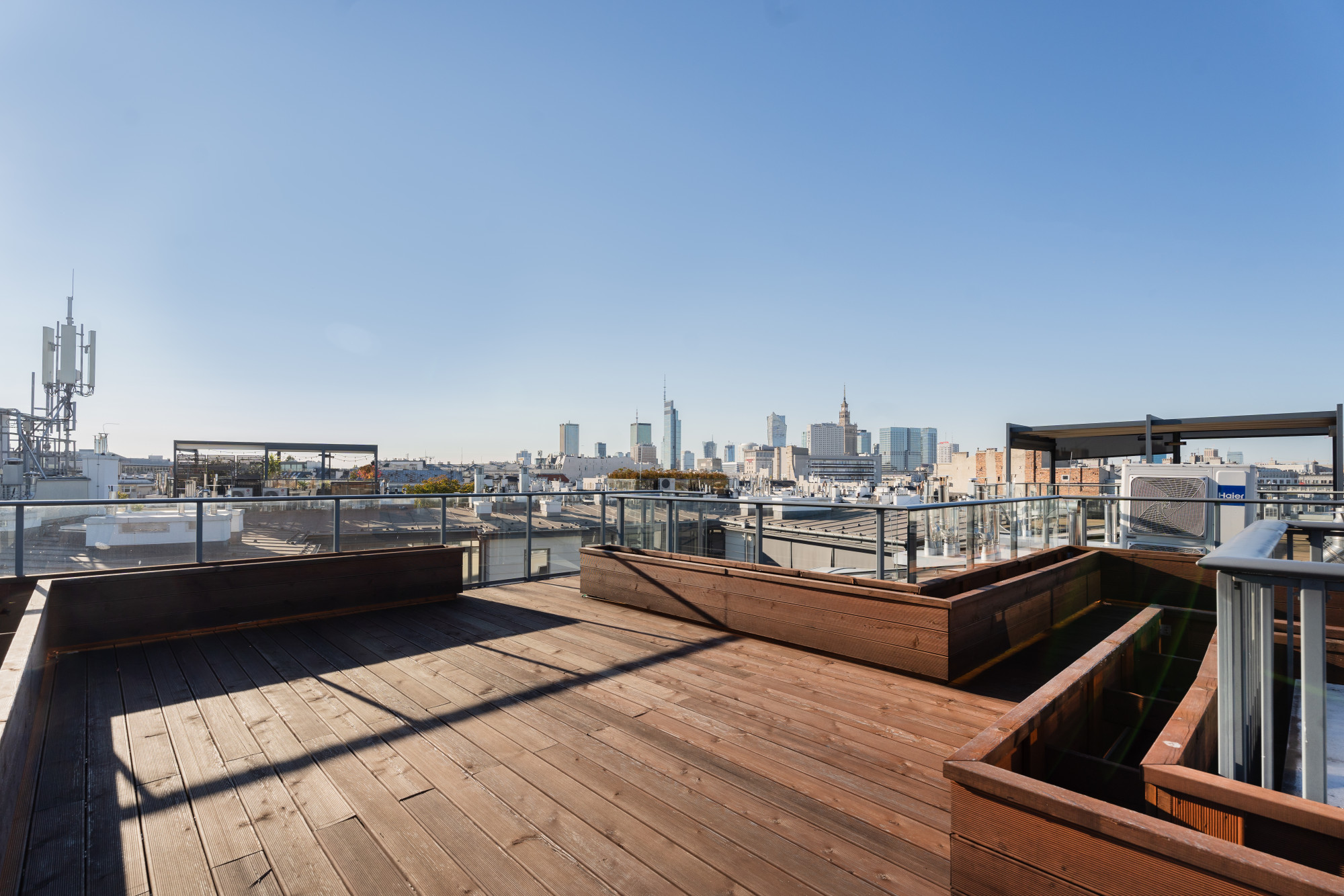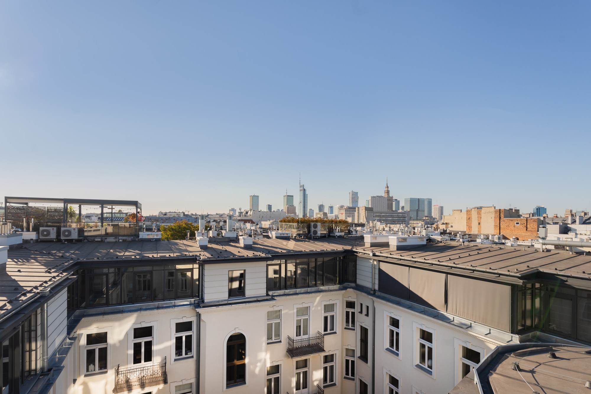 EUROVILLA prezentuje unikatowy 5 pokojowy penthouse na sprzedaż w kamienicy po pełnej rewitalizacji, zlokalizowanej w ścisłym centrum miasta. Apartament posiada prywatny taras na dachu o powierzchni około 80m2, z którego rozciąga się fantastyczny widok na panoramę Warszawy. Dodatkowym atutem są 2 miejsca postojowe i komórka lokatorska znajdujące się w garażu podziemnym.
