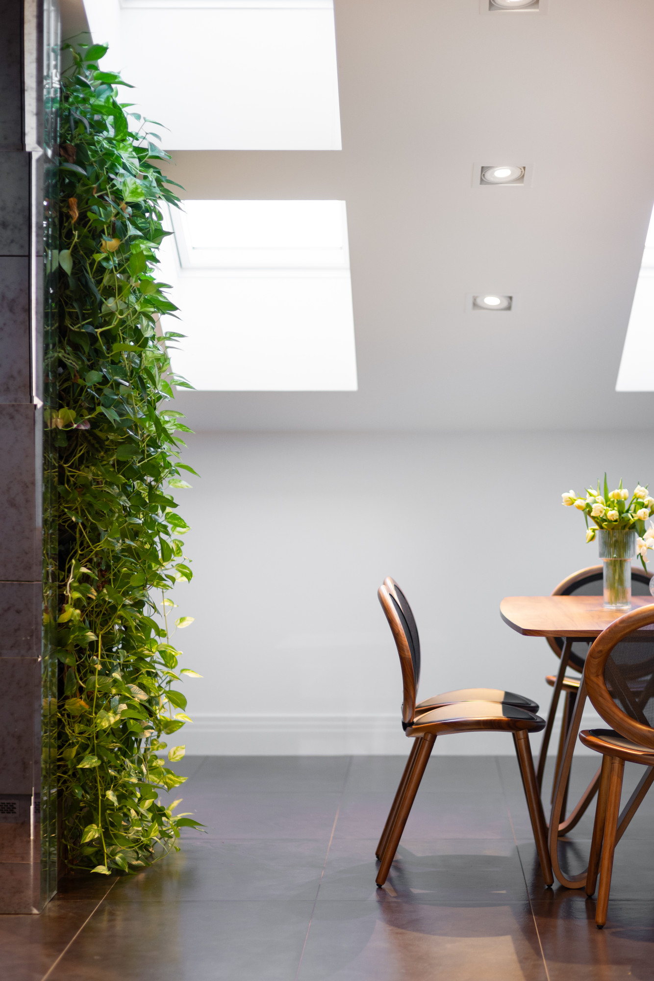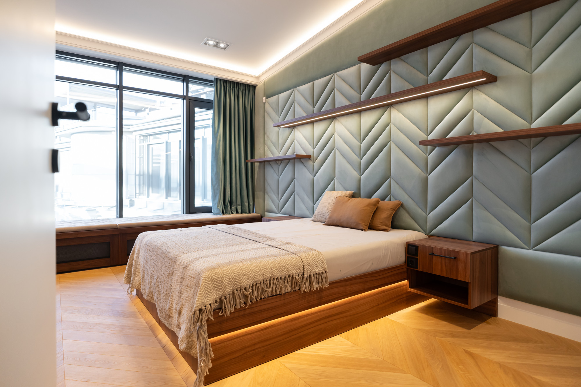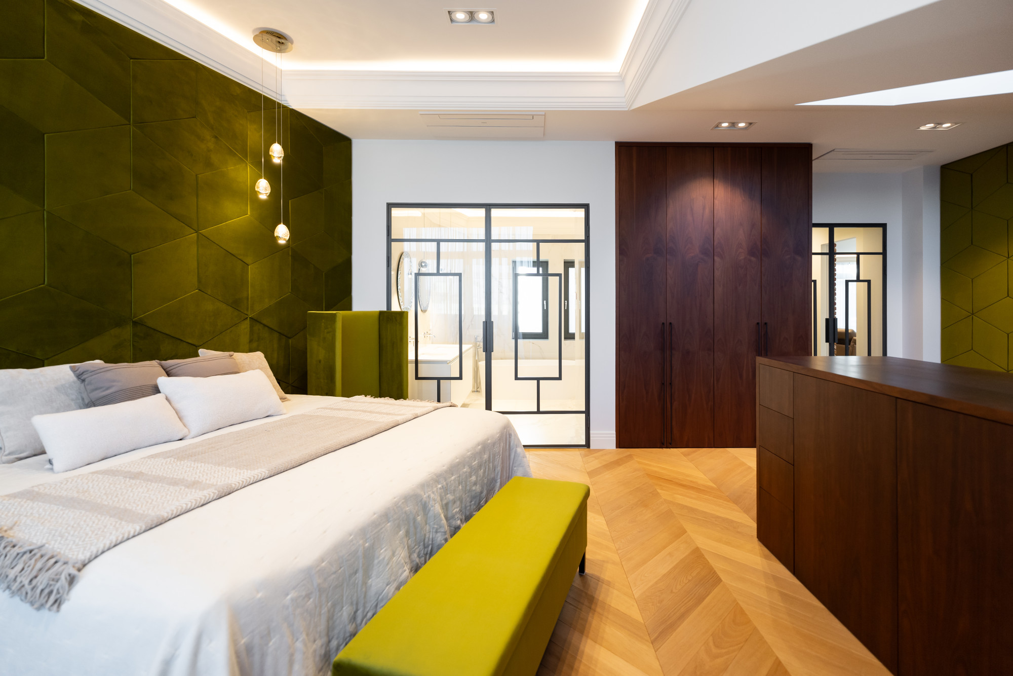 Apartament został wyposażony w system inteligentnego domu firmy KNX, indywidualnie sterowaną dla każdego z pomieszczeń klimatyzację, system nawilżania powietrza, niezależną wentylację i rekuperację, a także odkurzacz centralny.