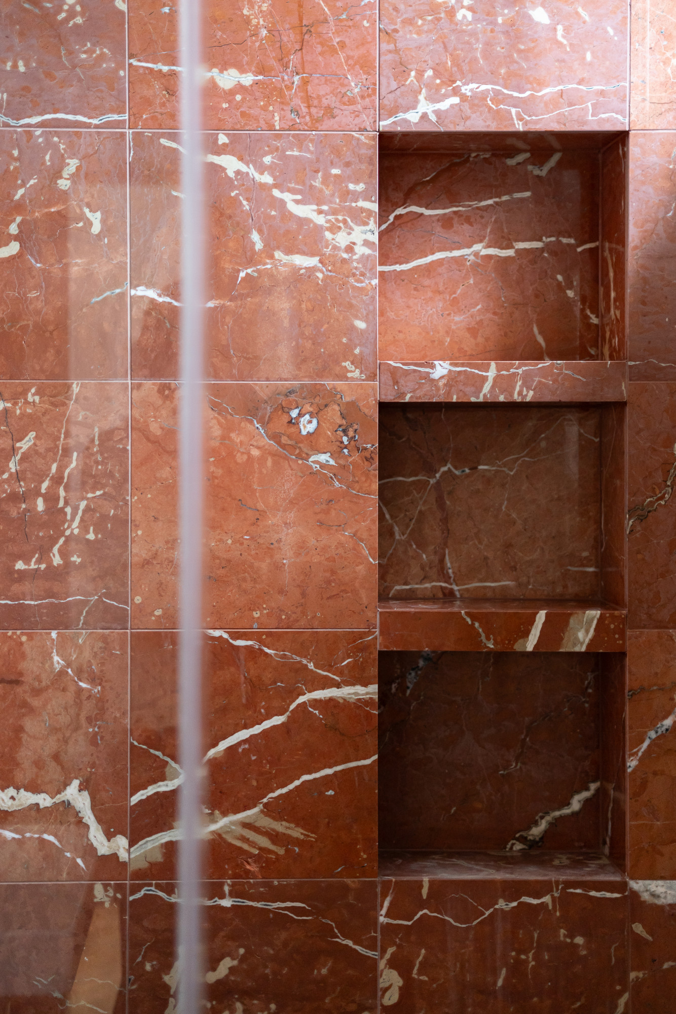 oryginalny parkiet dębowy ułożony w jodełkę. W łazienkach czerwony