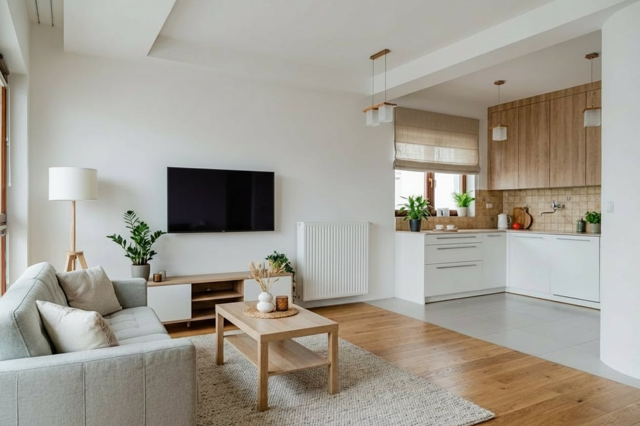 Mieszkanie bardzo dobrze doświetlone — naturalne światło przez cały dzień.