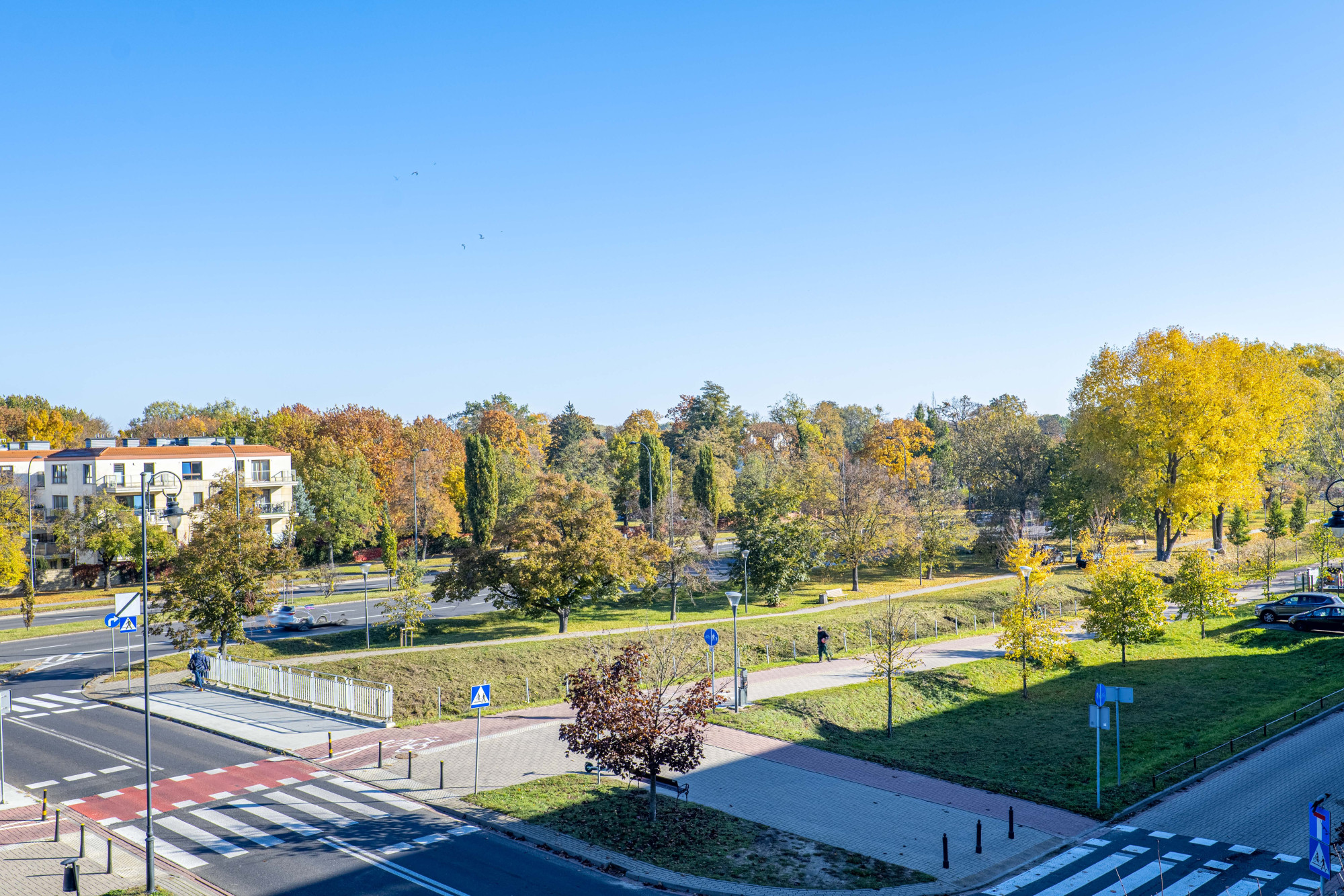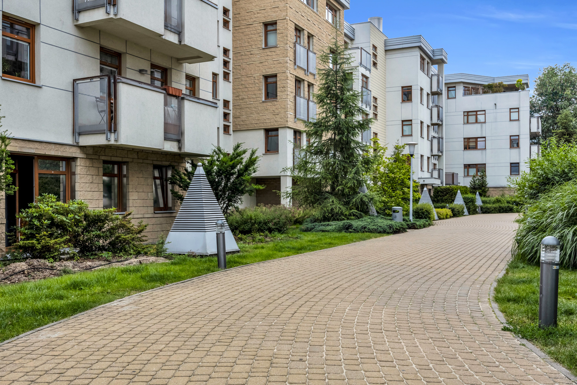 Mieszkanie znajduje się w znakomitej lokalizacji - na skraju Miasteczka Wilanów, co zapewnia ciszę i otwartą przestrzeń za oknami, a jednocześnie bliskość wszelkich udogodnień. W pobliżu dostępne są sklepy, punkty usługowe, restauracje oraz miejsca rekreacyjne. Do najbliższego przystanku tramwajowego można dotrzeć w około 10 minut, a szybki wyjazd z Miasteczka ułatwia komunikację z resztą miasta.