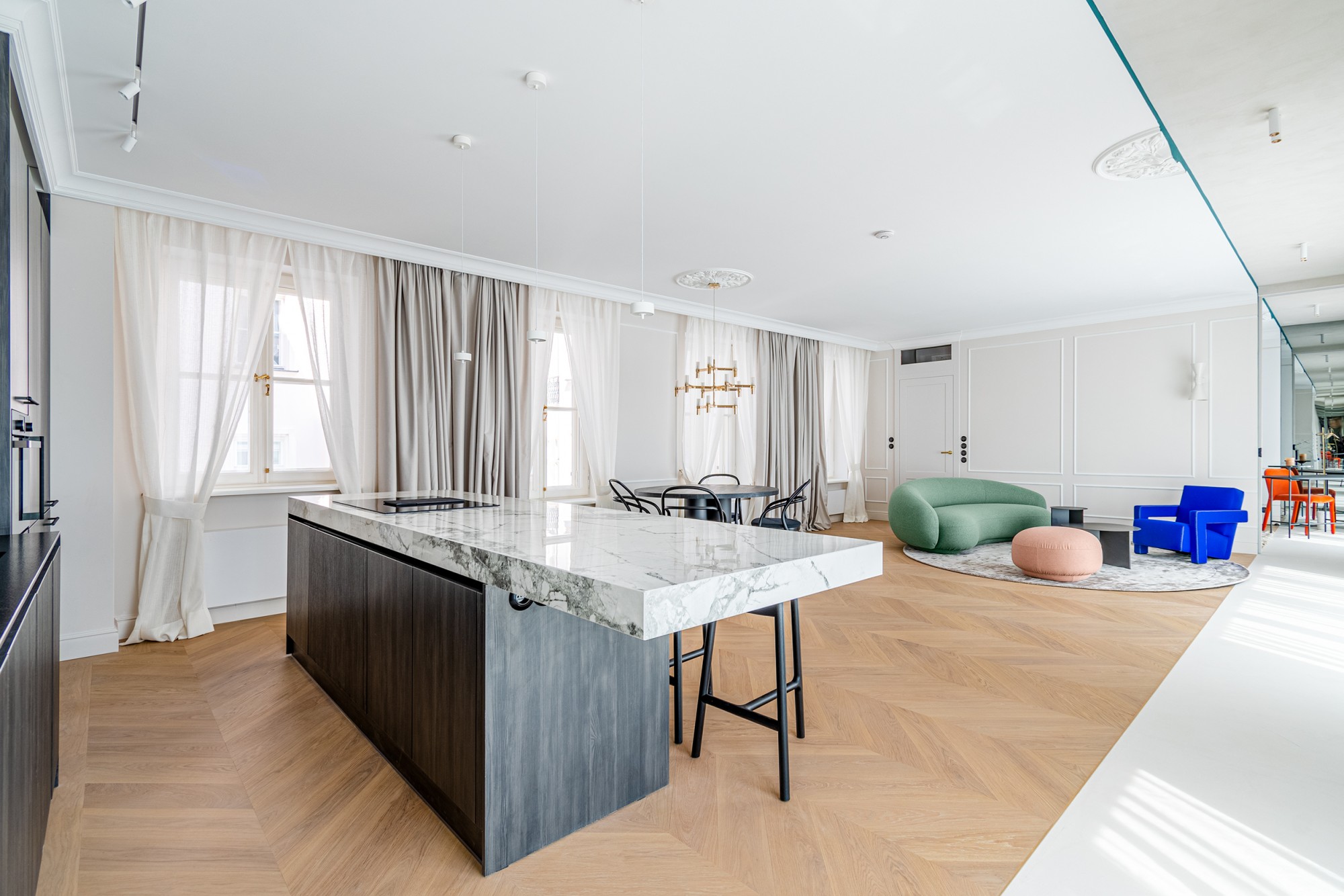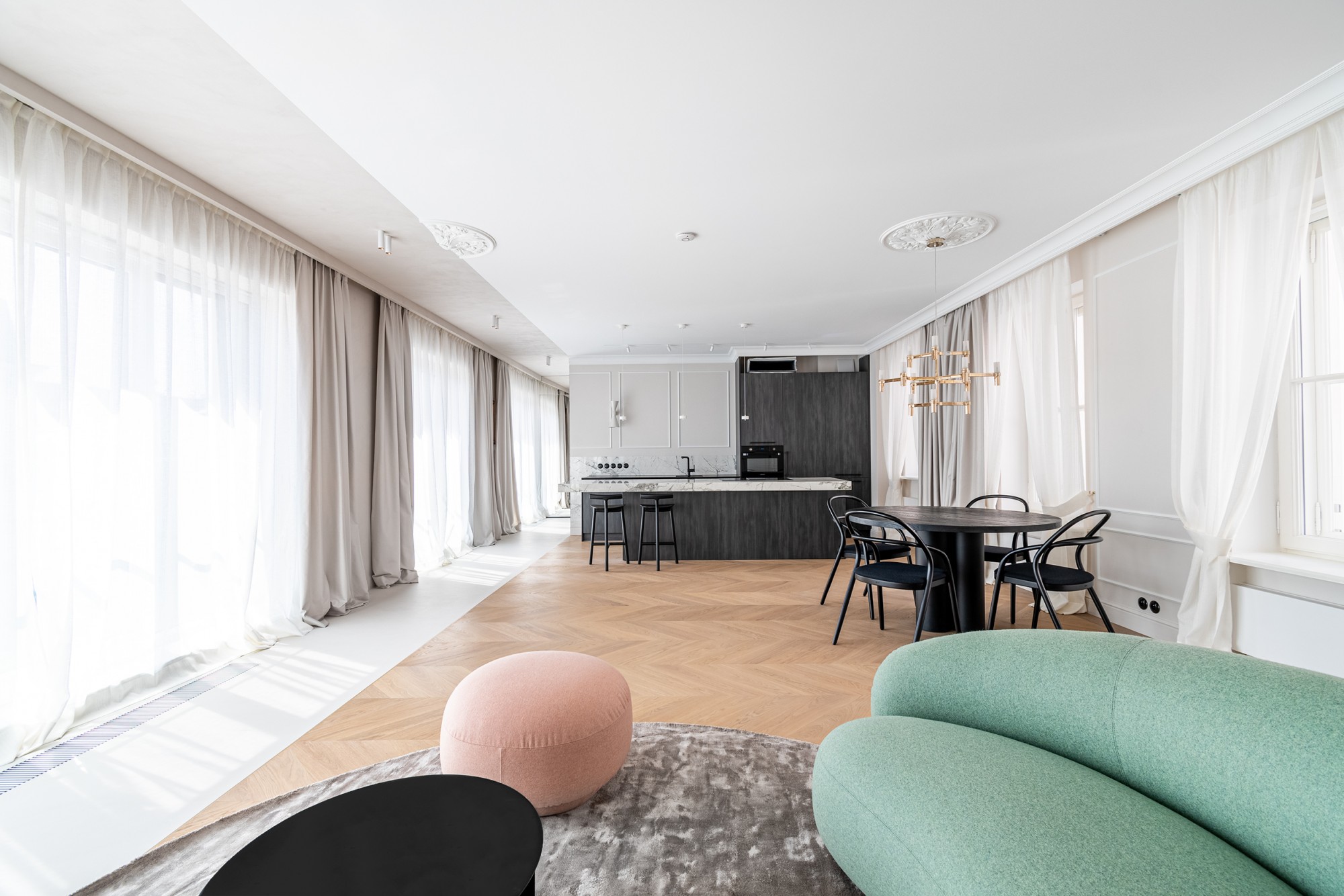 EUROVILLA prezentuje zachwycający designem oraz standardem wykończenia 3. pokojowy apartament na wynajem, zlokalizowany w kamienicy przy ul. Foksal 13/15.