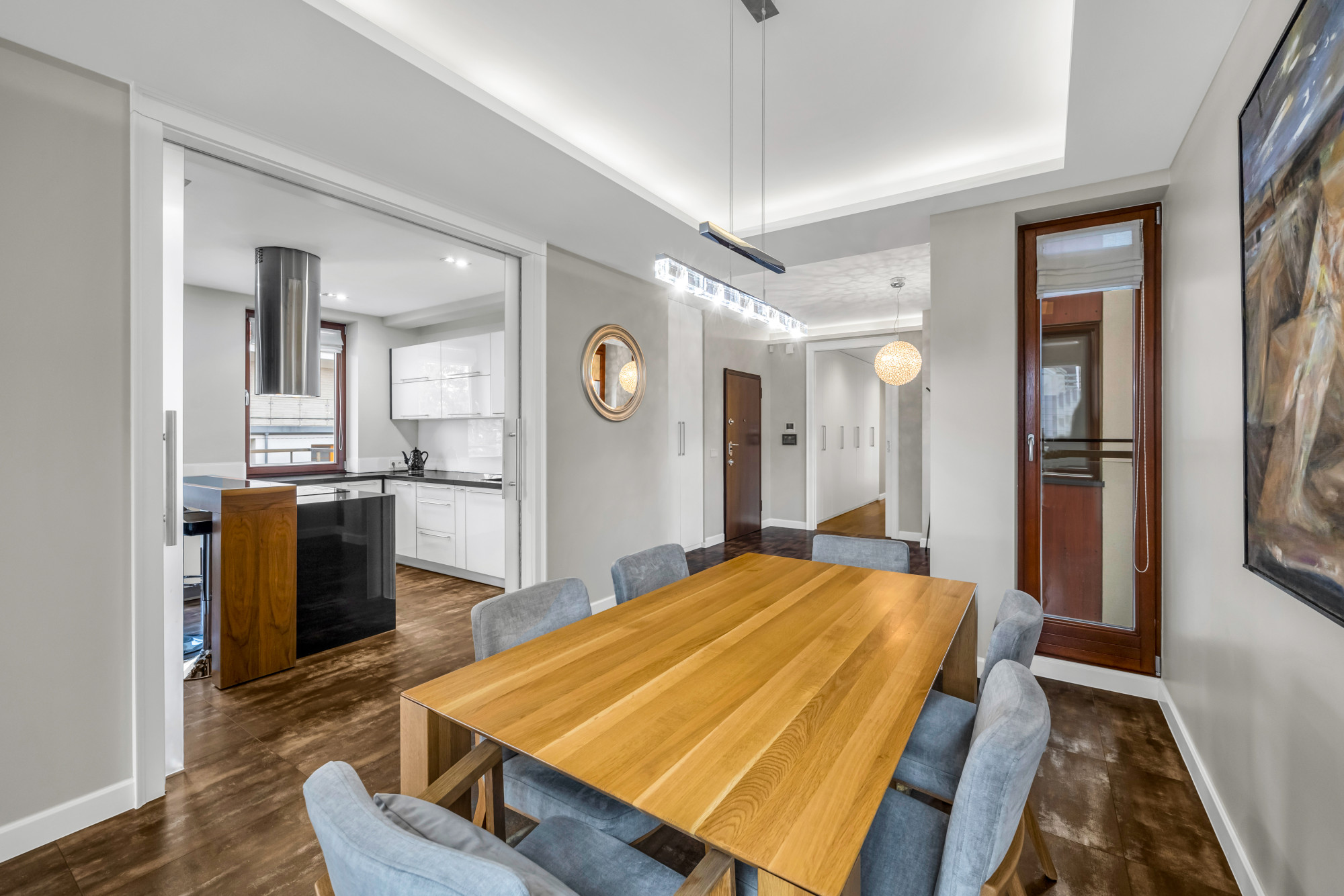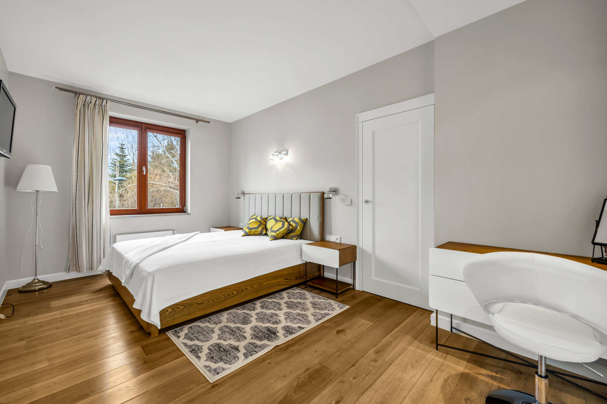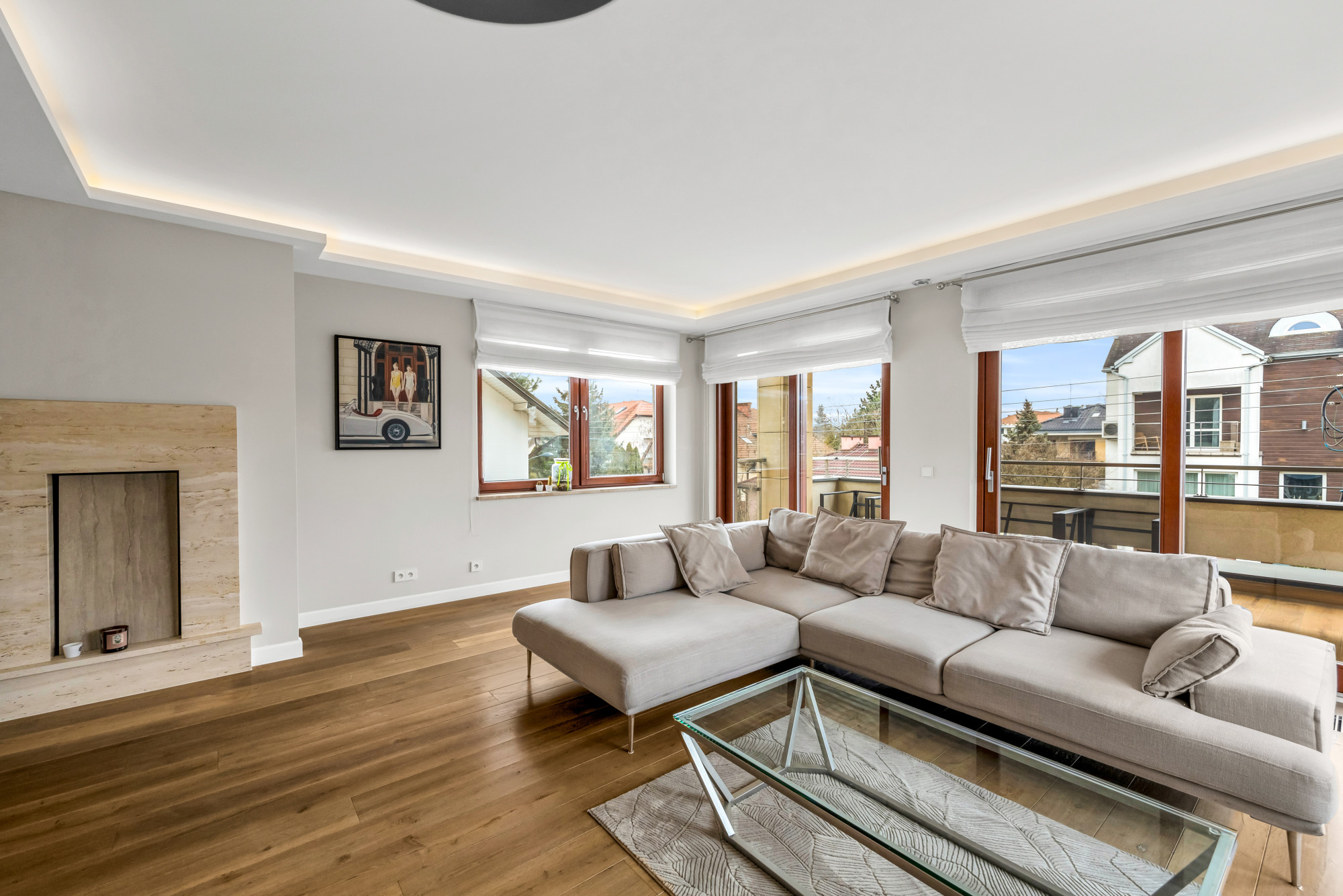 Apartament wyposażono w klimatyzację oraz ogrzewanie podłogowe. Jasne, przestronne pomieszczenia z dużymi, drewnianymi oknami. W salonie klimatyczny kominek. Kuchnia z najwyższej jakości sprzętem: lodówka w zabudowie, spiżarka, zmywarka, piekarnik, płyta indukcyjna. Dwa wygodne miejsca postojowe w podziemnym garażu oraz pojemna komórka lokatorska. Czynsz administracyjny 1.500 PLN/m-c - płatny dodatkowo.